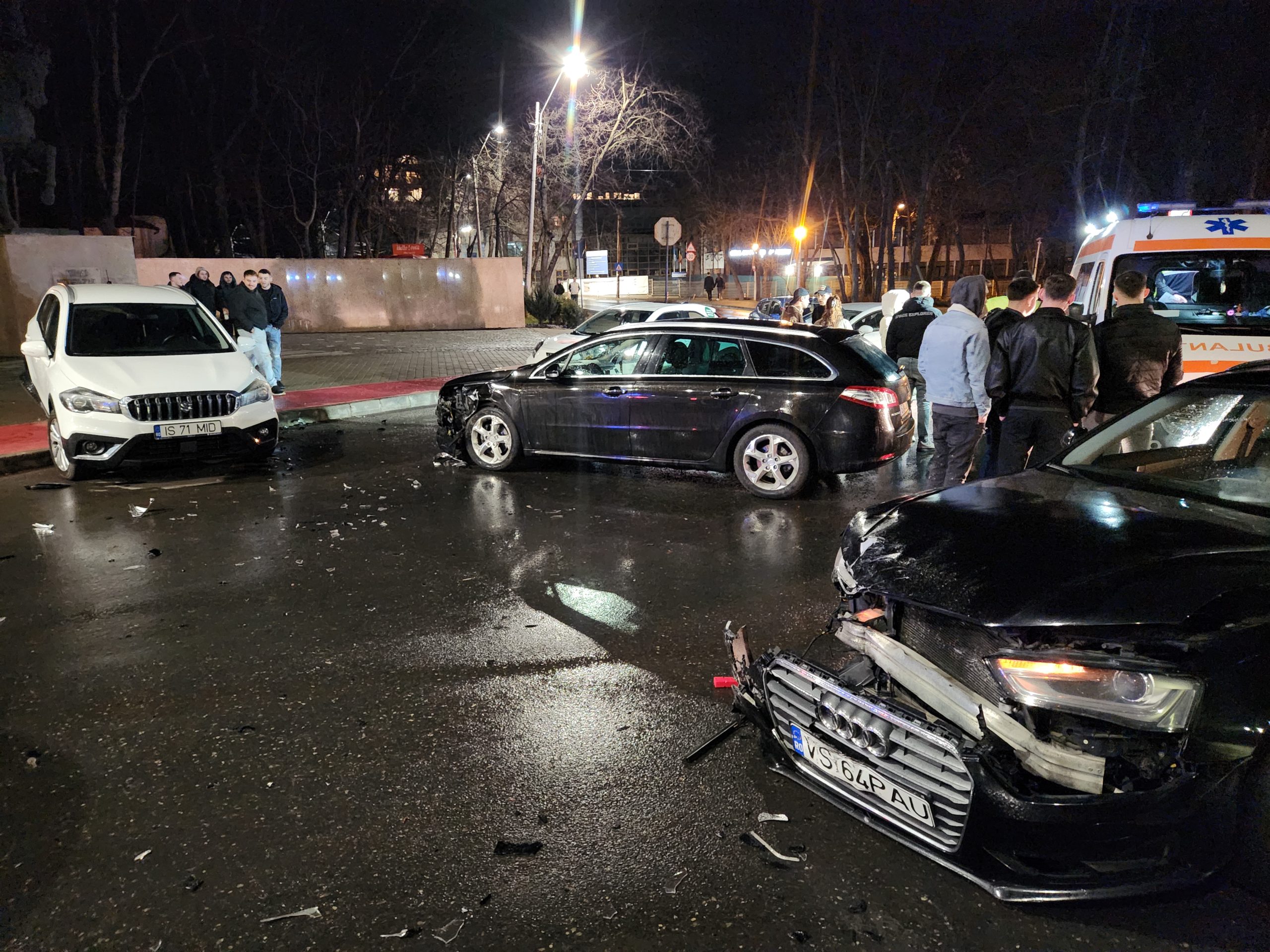 Un accident rutier în care au fost implicate trei autoturisme – un Audi, un Peugeot și un Suzuki – s-a produs în zona stadionului din Copou, pe un carosabil umed, potrivit informațiilor preliminare. În urma impactului, una dintre mașini a fost proiectată pe trotuar, iar mai multe persoane au avut nevoie de îngrijiri medicale la fața locului.