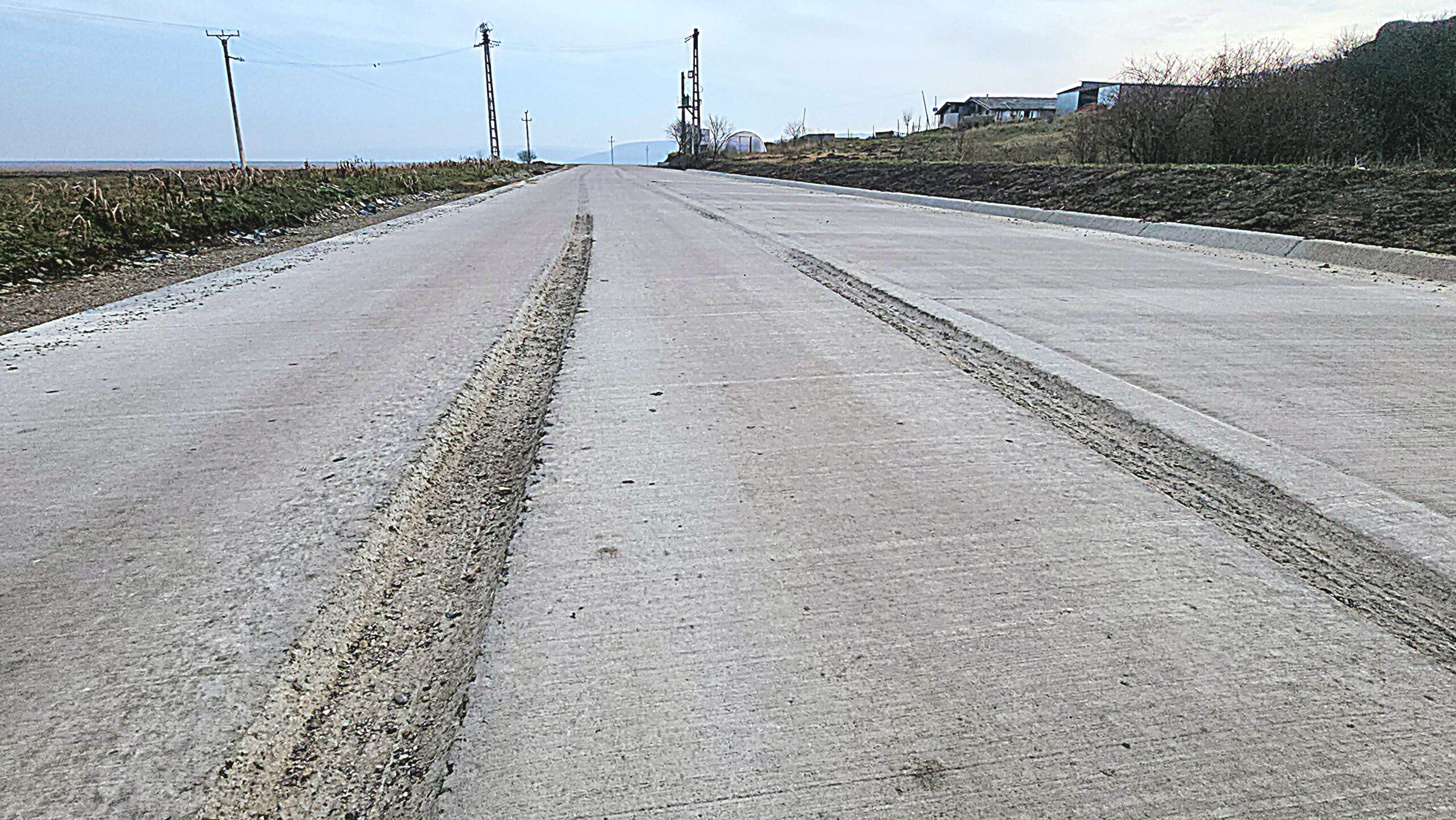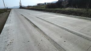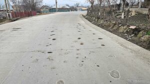 Pe un alt tronson al aceluiași drum, un șofer neatent a intrat cu roțile în betonul abia turnat și a stricat o porțiune destul de lungă. Șanțurile făcute în beton sunt adânci și ar putra destabiliza un autoturism în viteză. Așadar, atenție pe porțiunea respectivă.