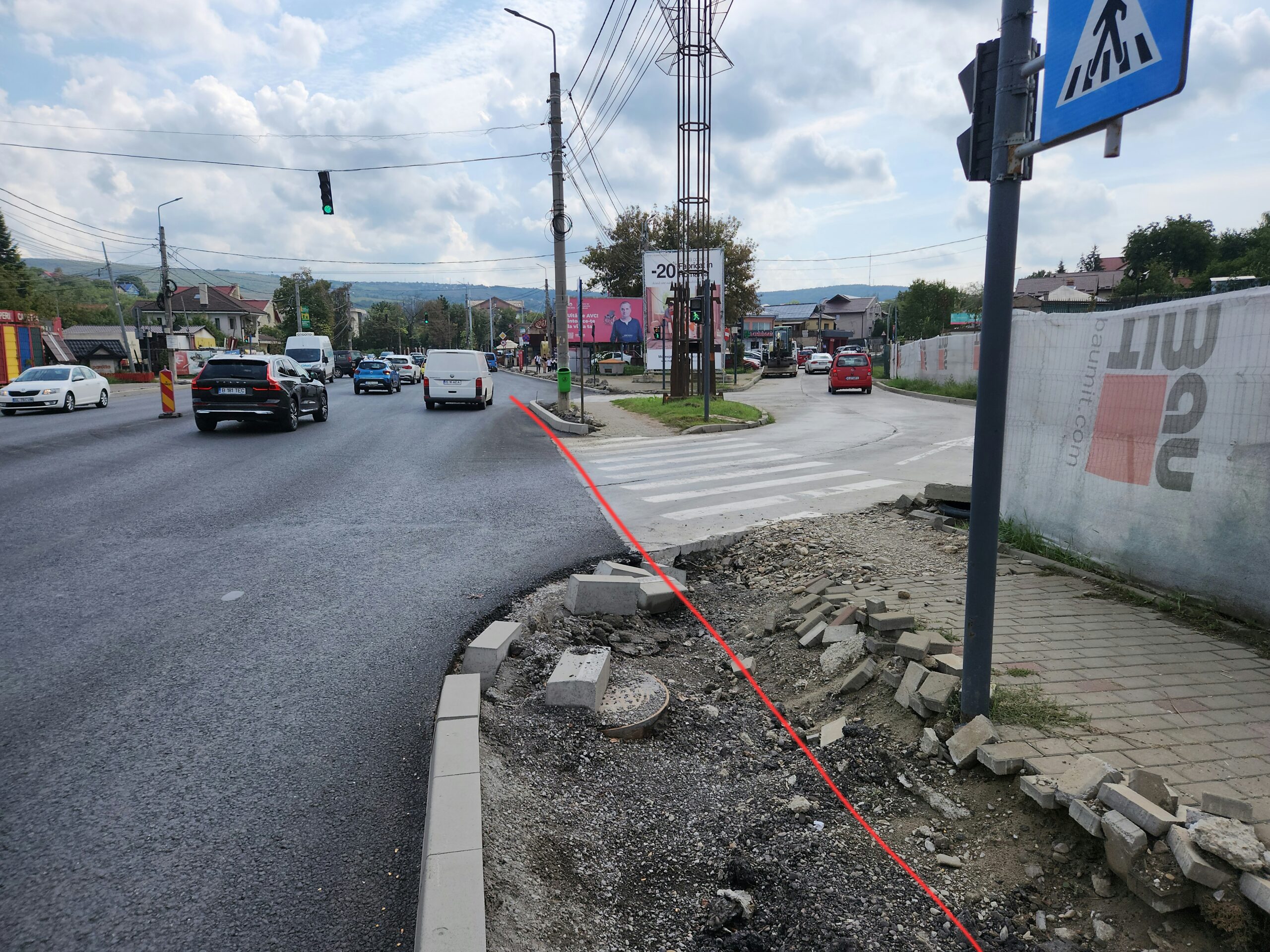 Șoseaua Bucium s-a „strâmtat” în zona hanului Trei Sarmale. Mic deranj pentru șoferi, beneficiu pentru pietoni FOTO