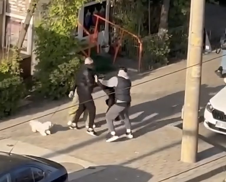 Potrivit imaginilor surprinse zilele trecute de către un martor, un tânăr care se plimba alături de prietena sa și de un cățel a fost abordat de alți doi tineri. Discuția dintre aceștia a degenerat rapid într-un conflict fizic. Cei doi agresori l-au doborât pe tânăr și au început să îl lovească repetat cu pumnii.