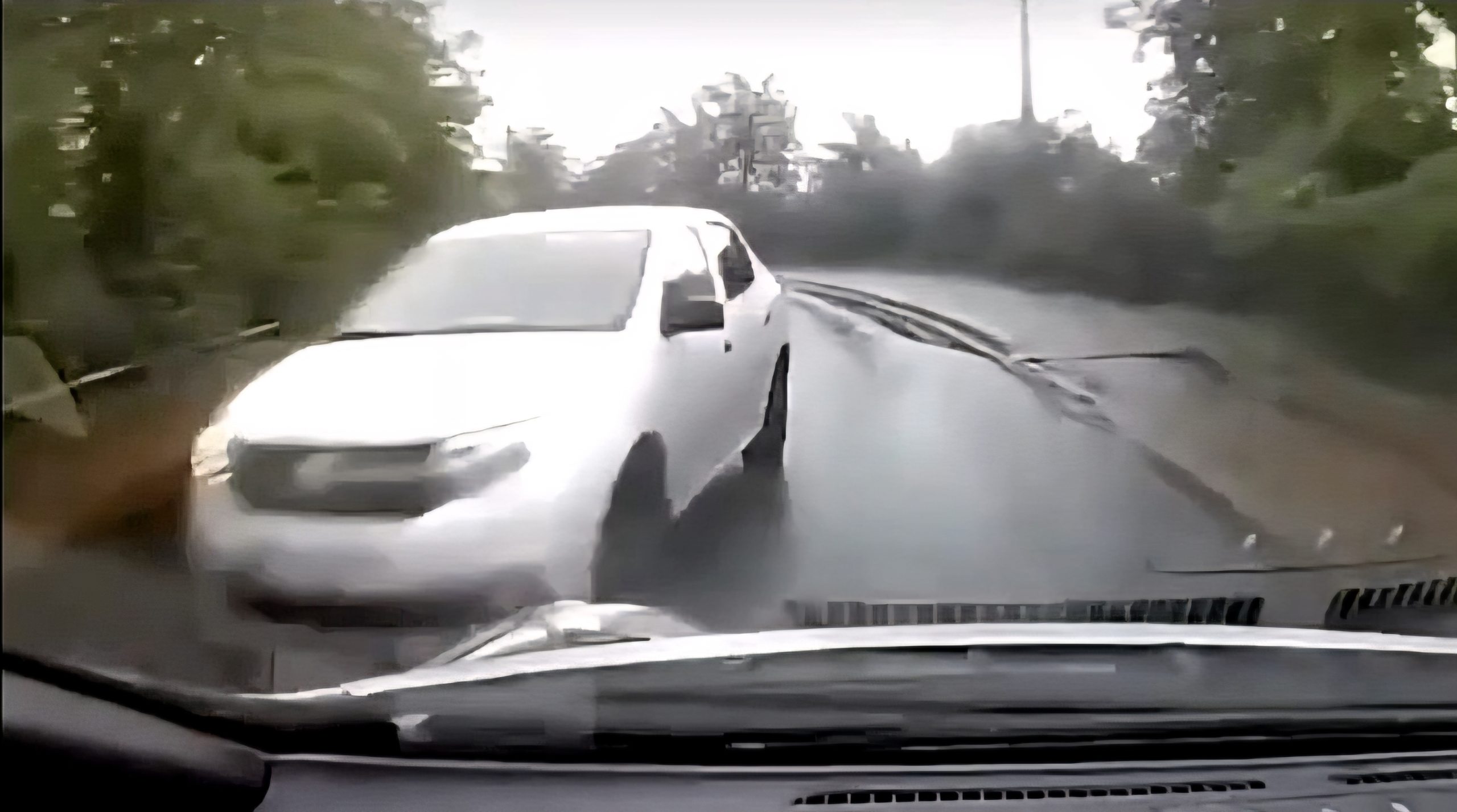 Primul moment s-a petrecut pe timpul nopții, când un șofer care circula regulamentar a fost nevoit să evite în ultimul moment un autoturism care a derapat și a pătruns pe sensul său de mers. Potrivit imaginilor, mașina scăpată de sub control a intrat în curbă cu viteză și a alunecat pe carosabil, ajungând pe contrasens. Doar reacția rapidă a conducătorului auto care venea din față a făcut ca impactul să fie evitat la limită.