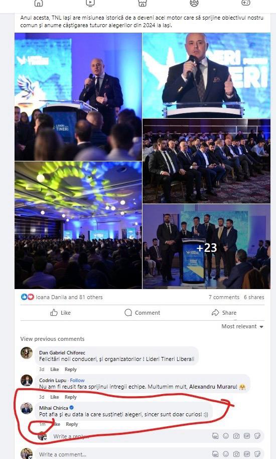 EXCLUSIV Contre pe Facebook între primarul Chirica și Muraru, șeful PNL. Chirica: „Pot afla și eu data la care susțineți alegeri, sincer sunt doar curios!”