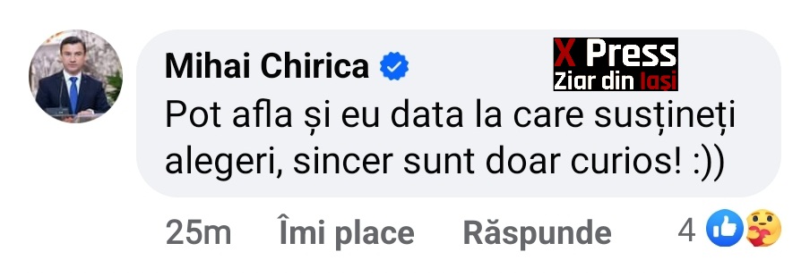 Întrebarea ironică a fost adresată de primarul Mihai Chirica pe Facebook, la o postare a șefului PNL Iași, Alexandru Muraru.