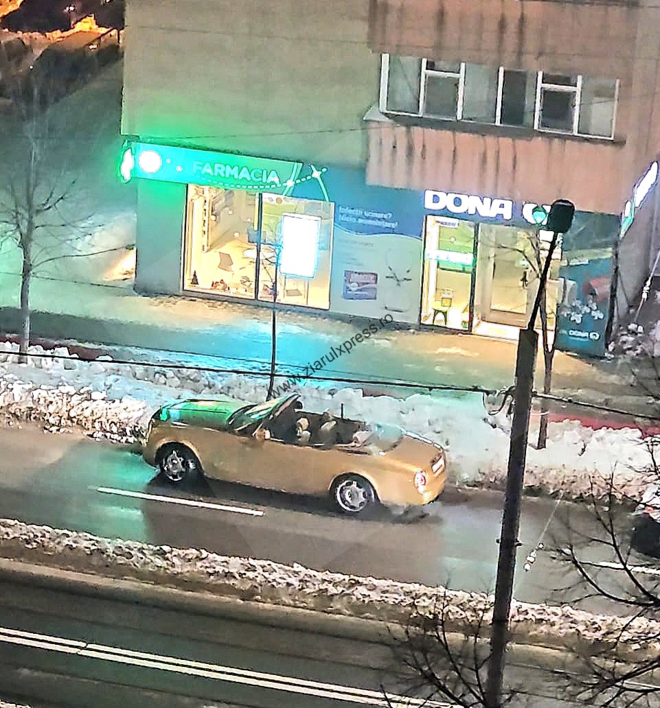 Ieșenii râd pe Internet: o decapotabilă Rolls Royce se plimbă prin ger și mormane de zăpadă Iași FOTO