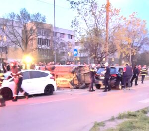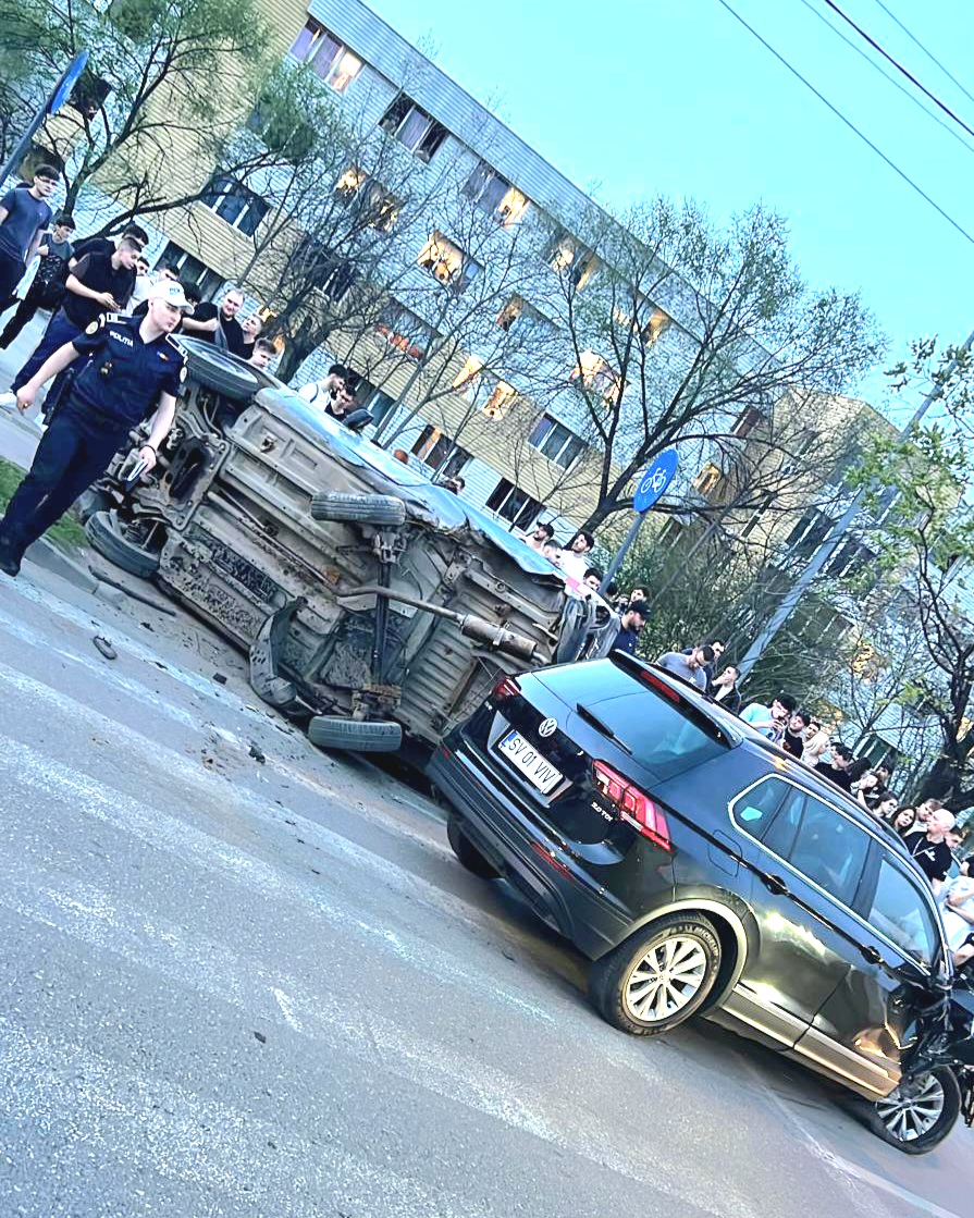 În jurul orei 20 a avut loc un accident în zona intersecției Splai Bahlui din Tudor Vladimirescu. Un șofer a pierdut controlul autoturismului, apoi a lovit alte două mașini, dintre care una era parcată. Prima mașină s-a răsturnat apoi.