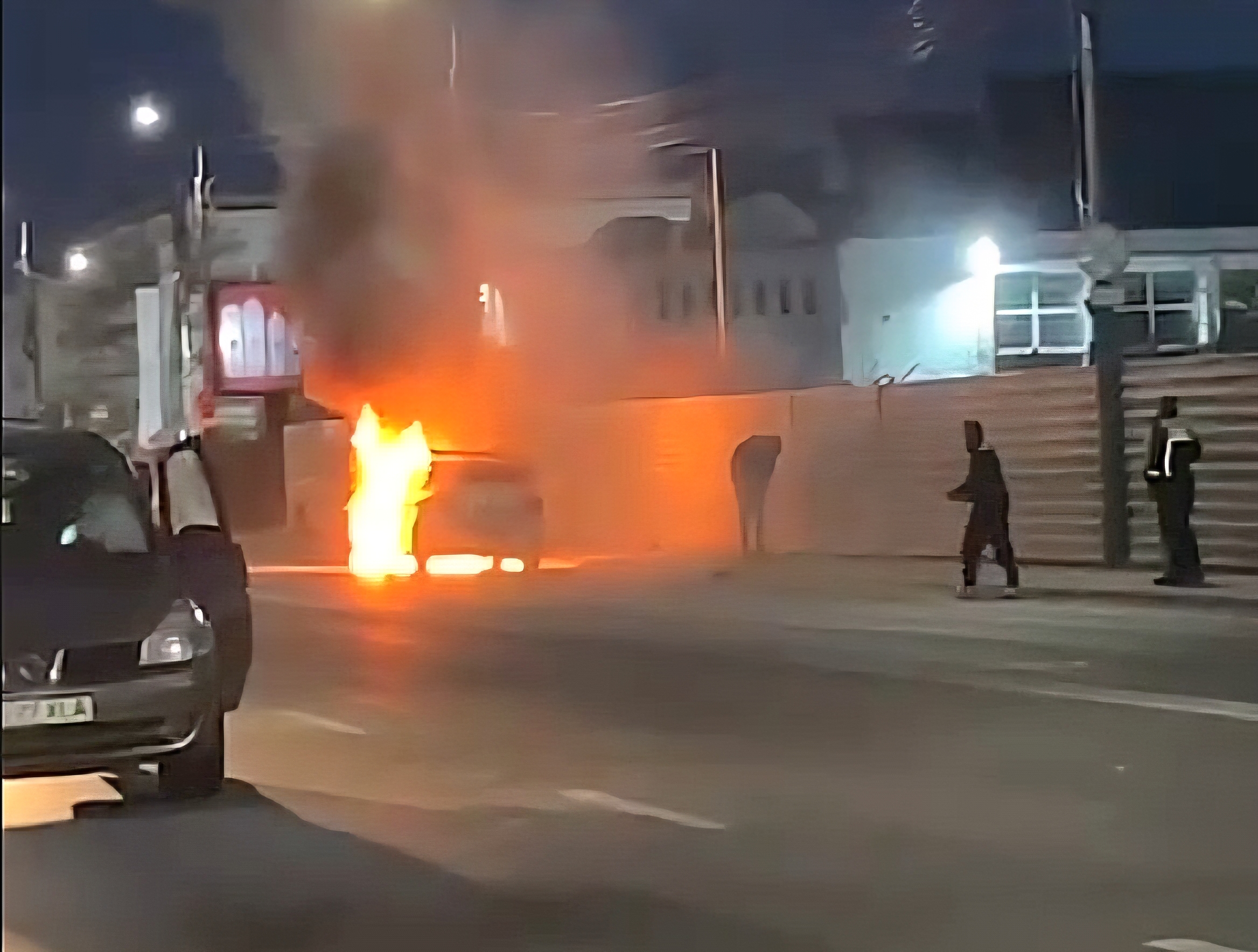 Polițiștii aflați în zonă au încercat să intervină imediat, folosind stingătoarele din dotare, însă acestea nu au fost suficiente pentru a opri incendiul. „Au încercat să stingă focul, dar stingătoarele mici nu au făcut față”, au mai spus martorii.
