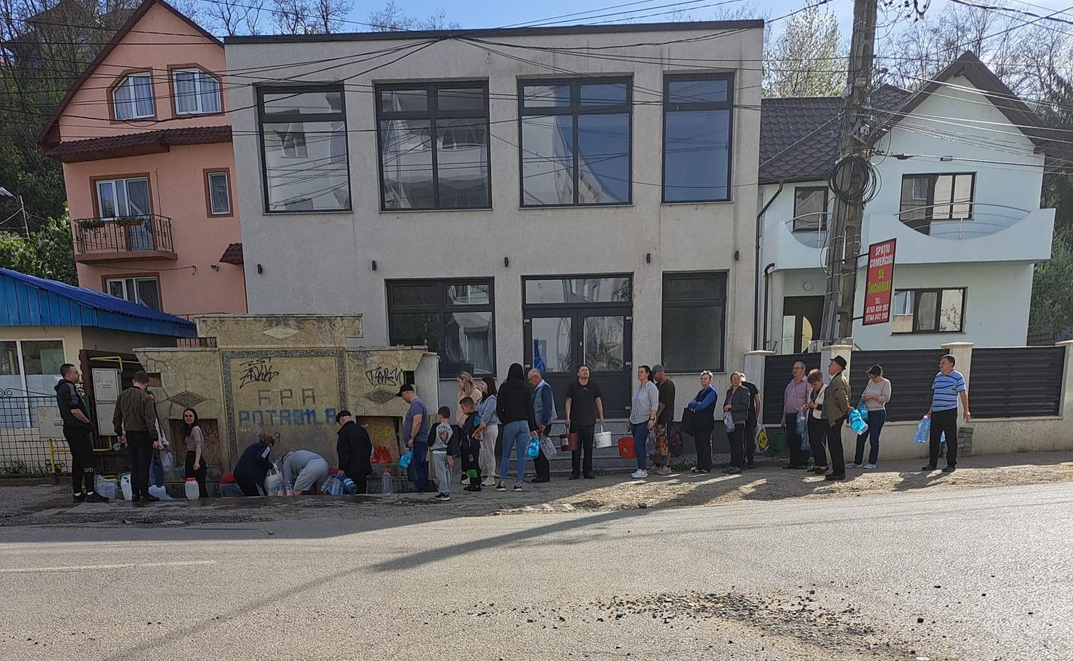 Pășcănenii, scoși în stradă cu bidoanele. Cozi la izvoare după ce orașul a fost lăsat fără apă