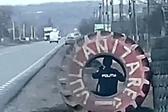 Radar mobil mascat după un pneu de tractor, la Iași – Poliția explică tactica utilizată VIDEO