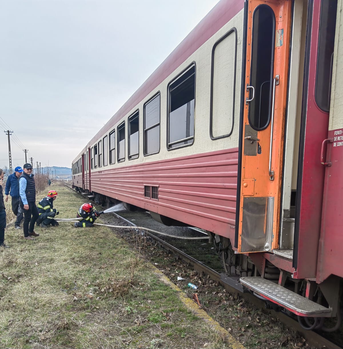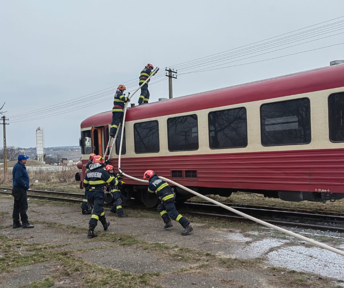 Trenul Iași – Hârlău a luat foc la Cotnari. 20 de călători se aflau în vagoane FOTO