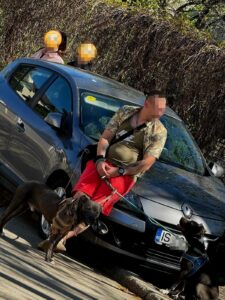 ”De asemenea, în urma controlului corporal preventiv, asupra persoanei a fost găsită o folie de aluminiu împăturită, în interiorul căreia se afla o substanţă vegetală de culoare brun-verzuie. Pe numele bărbatului au fost întocmite actele de sesizare pentru săvârşirea infracţiunii de deţinere fără drept de substanţe cu efect psihoactiv, fiindu-i aplicată şi sancţiunea contravenţională pentru nerespectarea legislaţiei privind regimul câinilor periculoşi”, a menţionat sursa citată.
