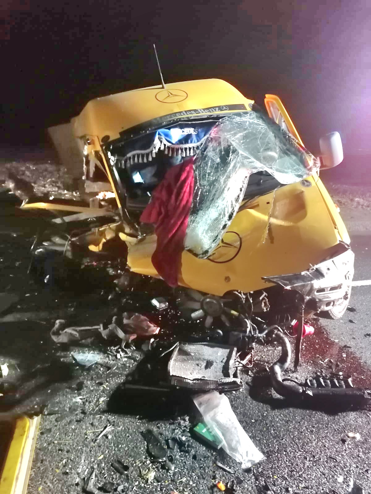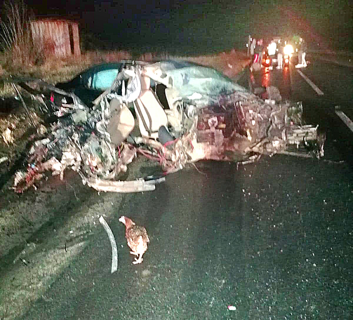 Autoutilitara Mercedes Sprinter transporta găini pentru a fi vândute la Iași. În momentul coliziunii, găinile au reusit să iasă și s-au împrăștiat pe câmp. O găina se poate vedea și în această fotografie realizată la fața locului.