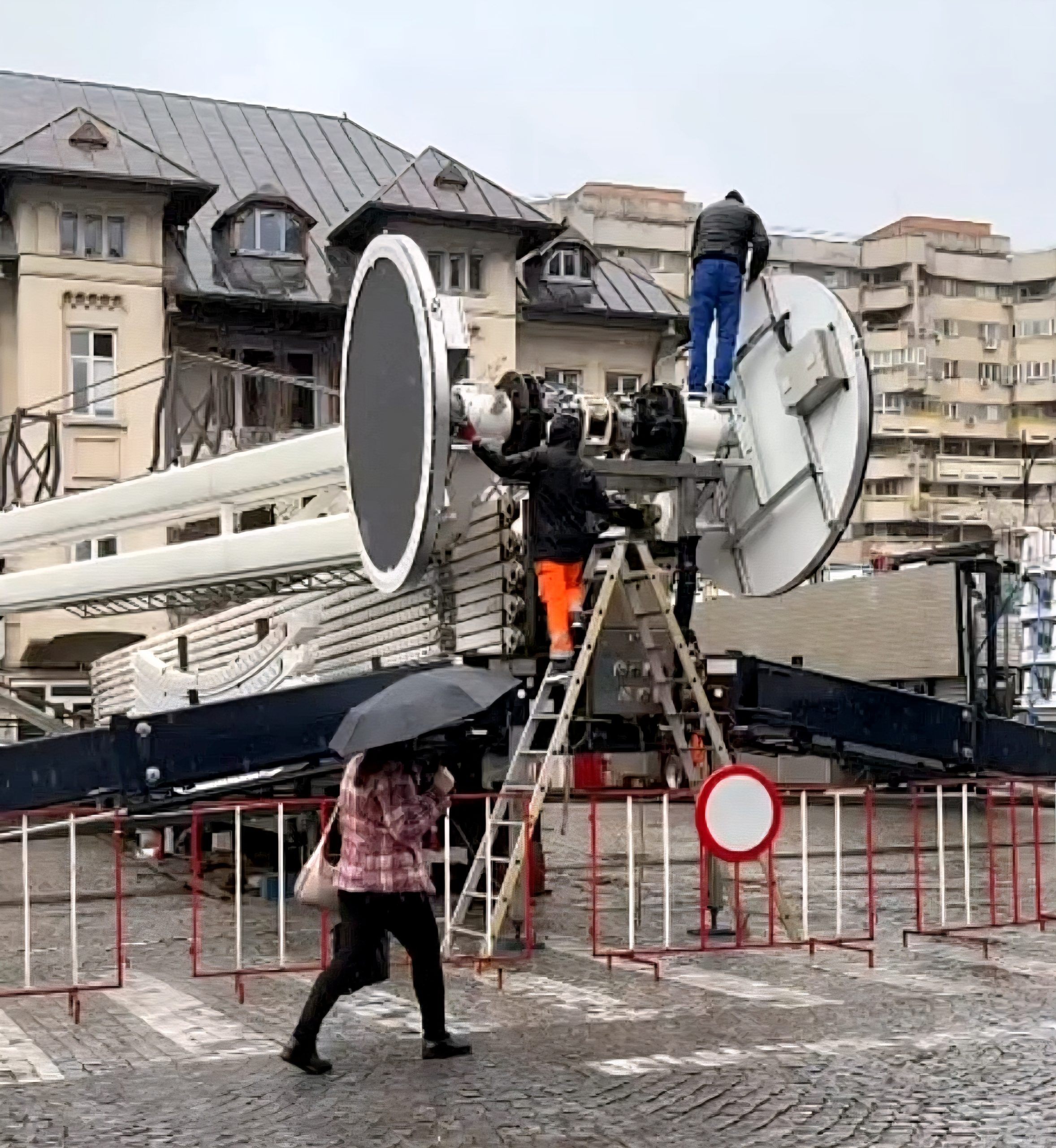 Zona a fost securizată încă de dimineață pentru a permite accesul utilajelor grele și pentru derularea în siguranță a operațiunilor de montare.
