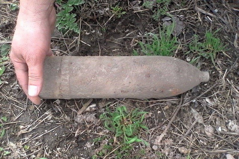 Un elev din clasa a VIII-a al școlii din localitatea Cavadinesti a găsit un obuz pe malul râului Prut, pe care l-a dus în incinta scolii.